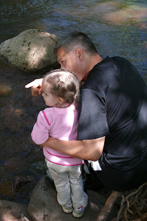 We went camping with Matt's parents, & Barry's, & Heather's families in mid-Aug. It was lots of fun. Matt found out after we already had our reservations that he had an all day clinical instructor's meeting in Thatcher the first day our our scheduled trip (He is a clinical instructor for EAC's Nursing program starting this fall - exciting stuff!). So he joined us in Sedona late that night, which made a long day of driving for him, he left for Thatcher at quarter to 5 in the morning, drove the 3 hours, was in a meeting all day, then that late afternoon left thatcher and made the 5.5 hour drive to Sedona. He did however get to miss out on packing/loading/driving with the girls/setting up camp/lunch/dinner/etc, so don't feel TOO sorry for him :) It rained quite a lot that first day, so I got to set up/unload in the rain. Thank goodness Nana & Boopah came and watched the girls (they had a condo nearby) so I could set up without worrying about them. Everyone got wet and dirty, but it all worked out! And I also learned that our tent leaked...A LOT! :)